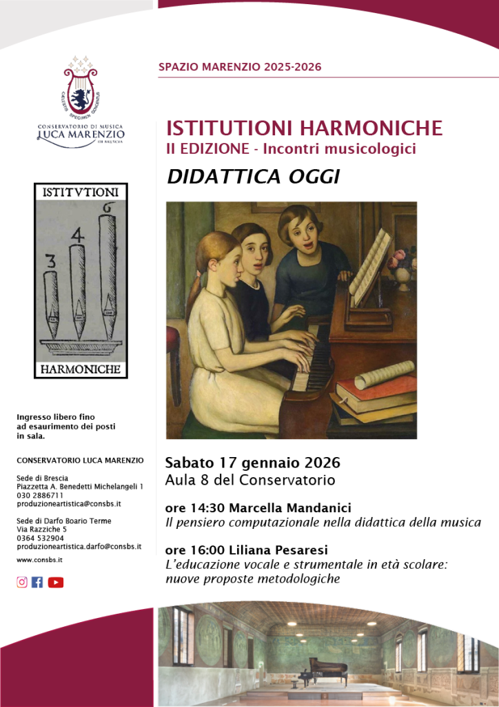 17 gennaio 2026 – Spazio Marenzio – ISTITUTIONI HARMONICHE incontri musicologici – II EDIZIONE