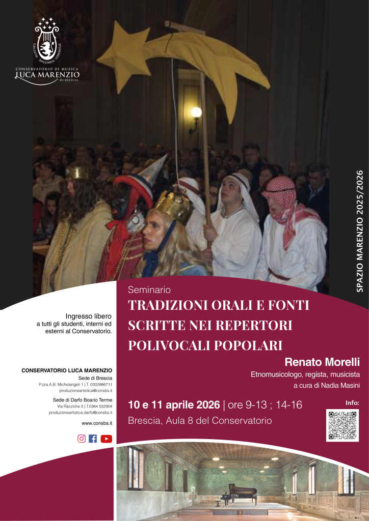 11 aprile 2026 | 09:00-13.00 ; 14.00-16.00 | Conservatorio di musica Luca Marenzio, Brescia – Aula 8